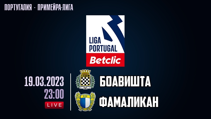 19 марта 2023 года, состоялась онлайн трансляция футбольного матча между футбольным клубом Боавишта и футбольным клубом Фамаликан, проходящего в рамках Примейра-лиги Португалии.