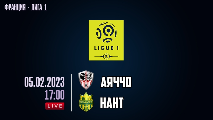 5 февраля 2023 года, состоялась онлайн трансляция футбольного матча между футбольным клубом Аяччо и футбольным клубом Нант, проходящего в рамках Лиги 1 чемпионата Франция.