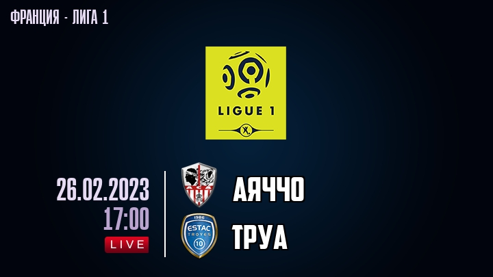 26 февраля 2023 года, состоялась онлайн трансляция футбольного матча между футбольным клубом Аяччо и футбольным клубом Труа, проходящего в рамках Лиги 1 чемпионата Франция.