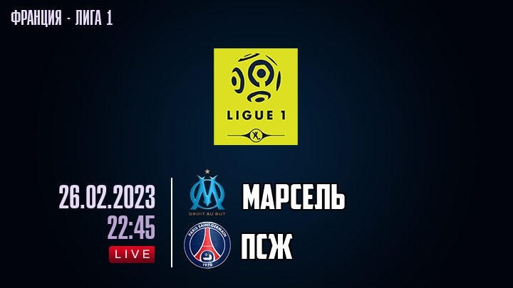 26 февраля 2023 года, состоялась онлайн трансляция футбольного матча между футбольным клубом Марсель и футбольным клубом ПСЖ, проходящего в рамках Лиги 1 чемпионата Франция.