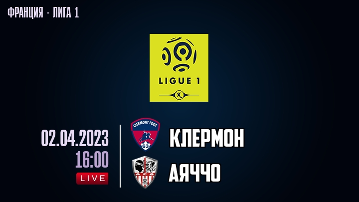 2 апреля 2023 года, состоялась онлайн трансляция футбольного матча между футбольным клубом Клермон и футбольным клубом Аяччо, проходящего в рамках Лиги 1 чемпионата Франция.