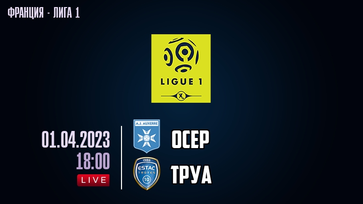 1 апреля 2023 года, состоялась онлайн трансляция футбольного матча между футбольным клубом Осер и футбольным клубом Труа, проходящего в рамках Лиги 1 чемпионата Франция.