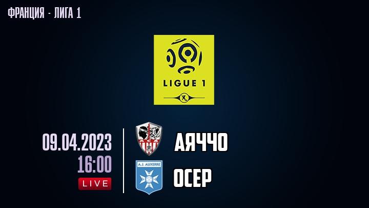 9 апреля 2023 года, состоялась онлайн трансляция футбольного матча между футбольным клубом Аяччо и футбольным клубом Осер, проходящего в рамках Лиги 1 чемпионата Франция.