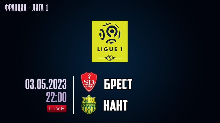 3 мая 2023 года, состоялась онлайн трансляция футбольного матча между футбольным клубом Брест и футбольным клубом Нант, проходящего в рамках Лиги 1 чемпионата Франция.