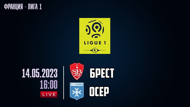14 мая 2023 года, состоялась онлайн трансляция футбольного матча между футбольным клубом Брест и футбольным клубом Осер, проходящего в рамках Лиги 1 чемпионата Франция.