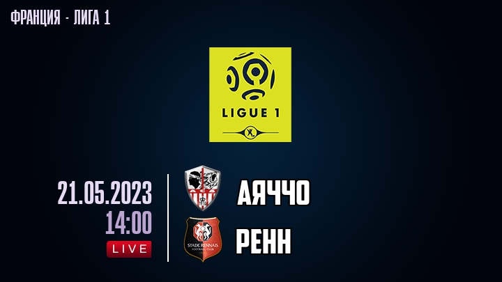 21 мая 2023 года, состоялась онлайн трансляция футбольного матча между футбольным клубом Аяччо и футбольным клубом Ренн, проходящего в рамках Лиги 1 чемпионата Франция.