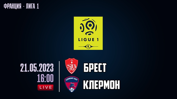21 мая 2023 года, состоялась онлайн трансляция футбольного матча между футбольным клубом Брест и футбольным клубом Клермон, проходящего в рамках Лиги 1 чемпионата Франция.