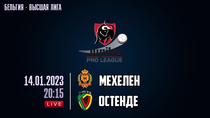14 января 2023 года, состоялась онлайн трансляция футбольного матча между футбольным клубом Мехелен и футбольным клубом Остенде, проходящего в рамках Высшей лиги Бельгии.