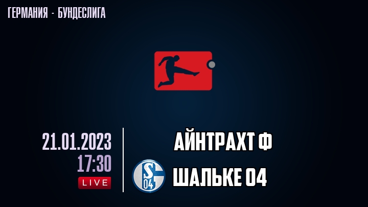 21 января 2023 года, состоялась онлайн трансляция футбольного матча между футбольным клубом Айнтрахт Ф и футбольным клубом Шальке, проходящего в рамках Бундеслиги Германии.