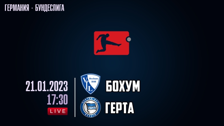 21 января 2023 года, состоялась онлайн трансляция футбольного матча между футбольным клубом Бохум и футбольным клубом Герта, проходящего в рамках Бундеслиги Германии.