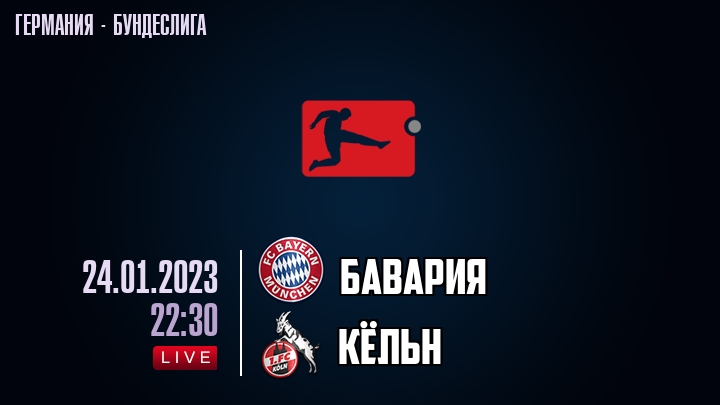 24 января 2023 года, состоялась онлайн трансляция футбольного матча между футбольным клубом Бавария и футбольным клубом Кльн, проходящего в рамках Бундеслиги Германии.