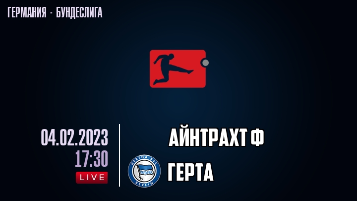 4 февраля 2023 года, состоялась онлайн трансляция футбольного матча между футбольным клубом Айнтрахт Ф и футбольным клубом Герта, проходящего в рамках Бундеслиги Германии.
