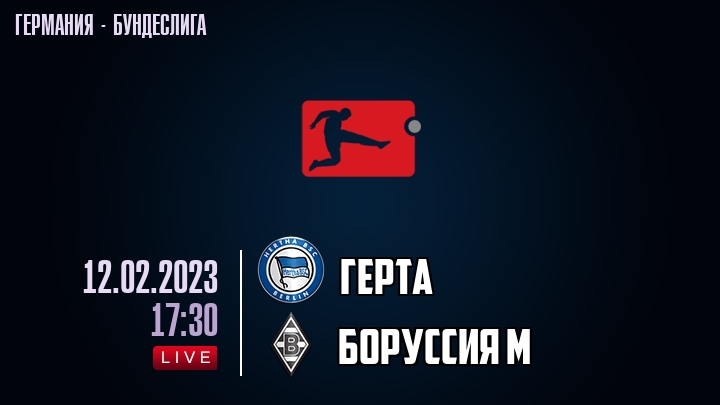 12 февраля 2023 года, состоялась онлайн трансляция футбольного матча между футбольным клубом Герта и футбольным клубом Боруссия М, проходящего в рамках Бундеслиги Германии.