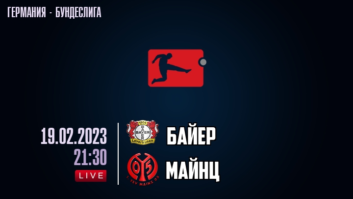 19 февраля 2023 года, состоялась онлайн трансляция футбольного матча между футбольным клубом Байер и футбольным клубом Майнц, проходящего в рамках Бундеслиги Германии.