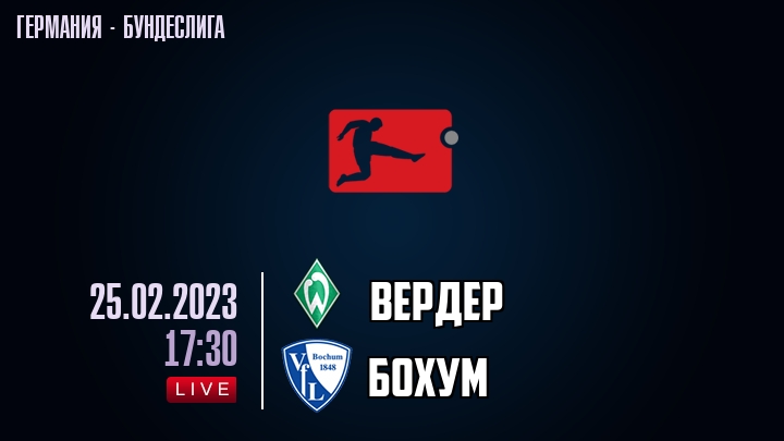 25 февраля 2023 года, состоялась онлайн трансляция футбольного матча между футбольным клубом Вердер и футбольным клубом Бохум, проходящего в рамках Бундеслиги Германии.