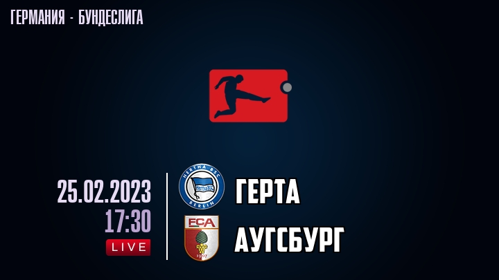 25 февраля 2023 года, состоялась онлайн трансляция футбольного матча между футбольным клубом Герта и футбольным клубом Аугсбург, проходящего в рамках Бундеслиги Германии.