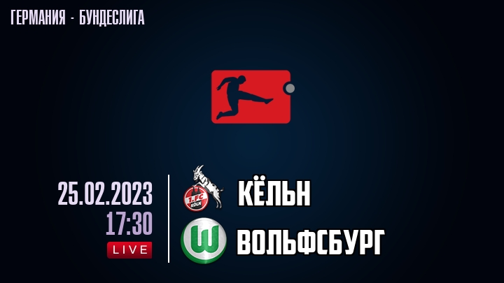 25 февраля 2023 года, состоялась онлайн трансляция футбольного матча между футбольным клубом Кльн и футбольным клубом Вольфсбург, проходящего в рамках Бундеслиги Германии.