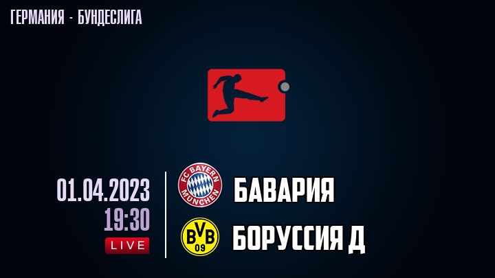 1 апреля 2023 года, состоялась онлайн трансляция футбольного матча между футбольным клубом Бавария и футбольным клубом Боруссия Д, проходящего в рамках Бундеслиги Германии.
