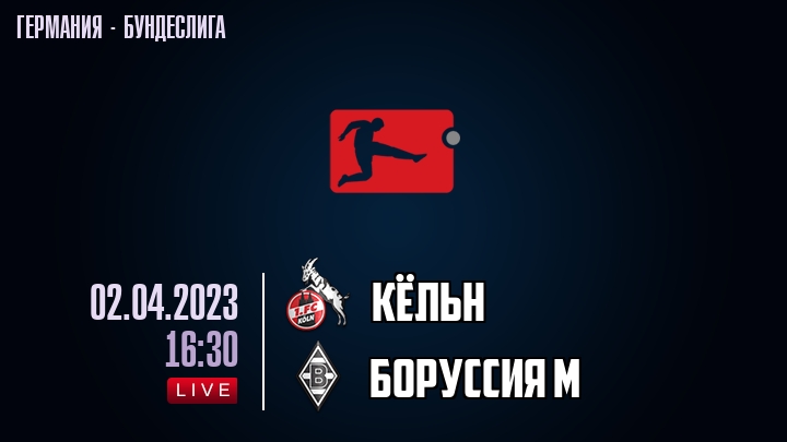 2 апреля 2023 года, состоялась онлайн трансляция футбольного матча между футбольным клубом Кльн и футбольным клубом Боруссия М, проходящего в рамках Бундеслиги Германии.