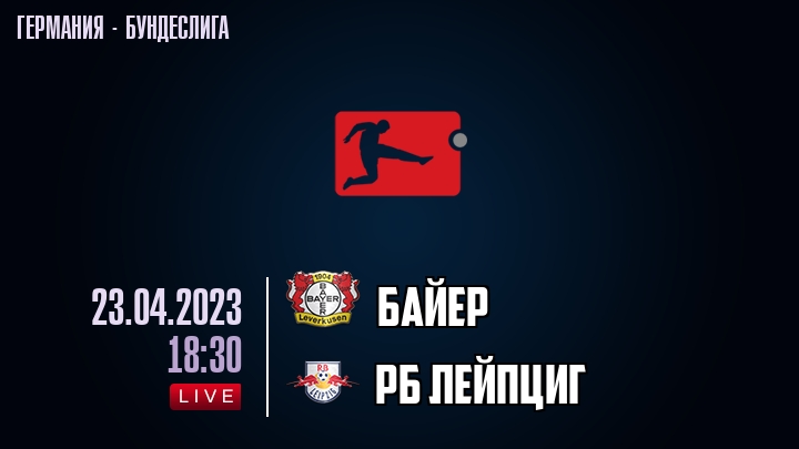 23 апреля 2023 года, состоялась онлайн трансляция футбольного матча между футбольным клубом Байер и футбольным клубом РБ Лейпциг, проходящего в рамках Бундеслиги Германии.