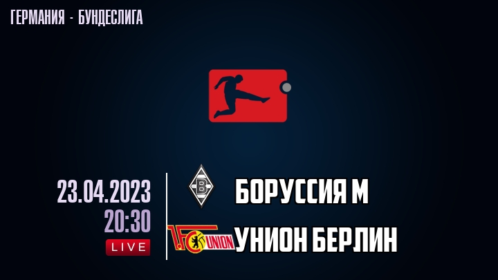 23 апреля 2023 года, состоялась онлайн трансляция футбольного матча между футбольным клубом Боруссия М и футбольным клубом Унион Берлин, проходящего в рамках Бундеслиги Германии.