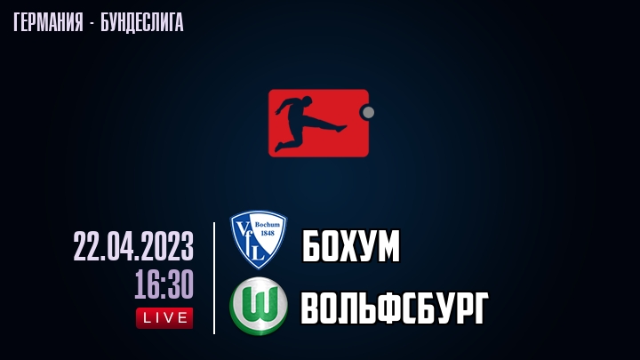 22 апреля 2023 года, состоялась онлайн трансляция футбольного матча между футбольным клубом Бохум и футбольным клубом Вольфсбург, проходящего в рамках Бундеслиги Германии.
