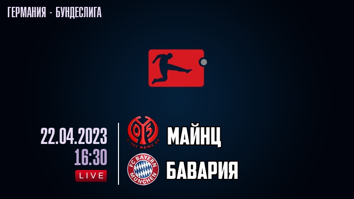 22 апреля 2023 года, состоялась онлайн трансляция футбольного матча между футбольным клубом Майнц и футбольным клубом Бавария, проходящего в рамках Бундеслиги Германии.