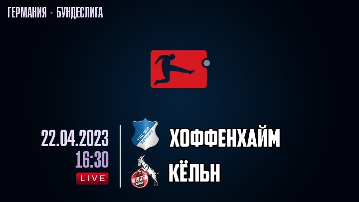 22 апреля 2023 года, состоялась онлайн трансляция футбольного матча между футбольным клубом Хоффенхайм и футбольным клубом Кльн, проходящего в рамках Бундеслиги Германии.