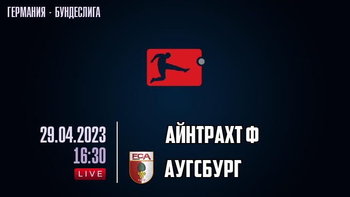 29 апреля 2023 года, состоялась онлайн трансляция футбольного матча между футбольным клубом Айнтрахт Ф и футбольным клубом Аугсбург, проходящего в рамках Бундеслиги Германии.