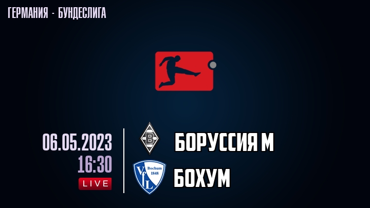 6 мая 2023 года, состоялась онлайн трансляция футбольного матча между футбольным клубом Боруссия М и футбольным клубом Бохум, проходящего в рамках Бундеслиги Германии.