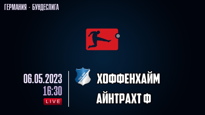 6 мая 2023 года, состоялась онлайн трансляция футбольного матча между футбольным клубом Хоффенхайм и футбольным клубом Айнтрахт Ф, проходящего в рамках Бундеслиги Германии.