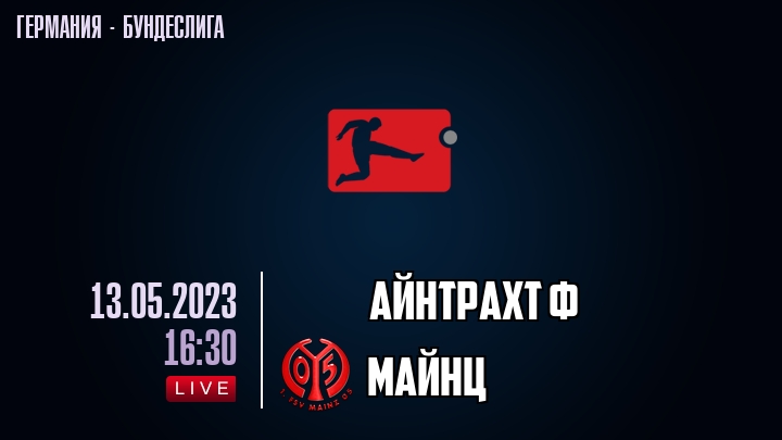 13 мая 2023 года, состоялась онлайн трансляция футбольного матча между футбольным клубом Айнтрахт Ф и футбольным клубом Майнц, проходящего в рамках Бундеслиги Германии.