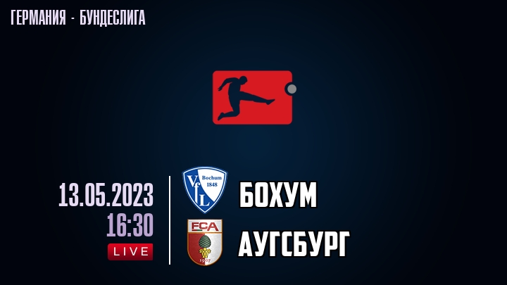 13 мая 2023 года, состоялась онлайн трансляция футбольного матча между футбольным клубом Бохум и футбольным клубом Аугсбург, проходящего в рамках Бундеслиги Германии.