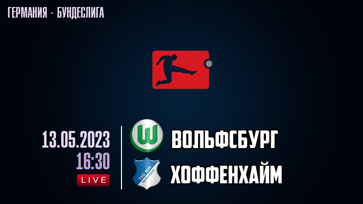 13 мая 2023 года, состоялась онлайн трансляция футбольного матча между футбольным клубом Вольфсбург и футбольным клубом Хоффенхайм, проходящего в рамках Бундеслиги Германии.