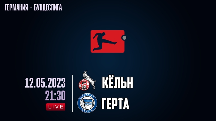 12 мая 2023 года, состоялась онлайн трансляция футбольного матча между футбольным клубом Кльн и футбольным клубом Герта, проходящего в рамках Бундеслиги Германии.