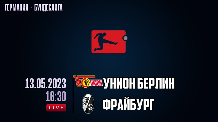 13 мая 2023 года, состоялась онлайн трансляция футбольного матча между футбольным клубом Унион Берлин и футбольным клубом Фрайбург, проходящего в рамках Бундеслиги Германии.