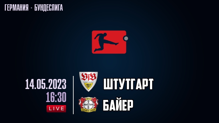 14 мая 2023 года, состоялась онлайн трансляция футбольного матча между футбольным клубом Штутгарт и футбольным клубом Байер, проходящего в рамках Бундеслиги Германии.