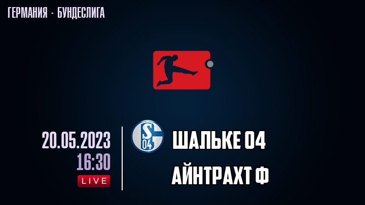 20 мая 2023 года, состоялась онлайн трансляция футбольного матча между футбольным клубом Шальке и футбольным клубом Айнтрахт Ф, проходящего в рамках Бундеслиги Германии.