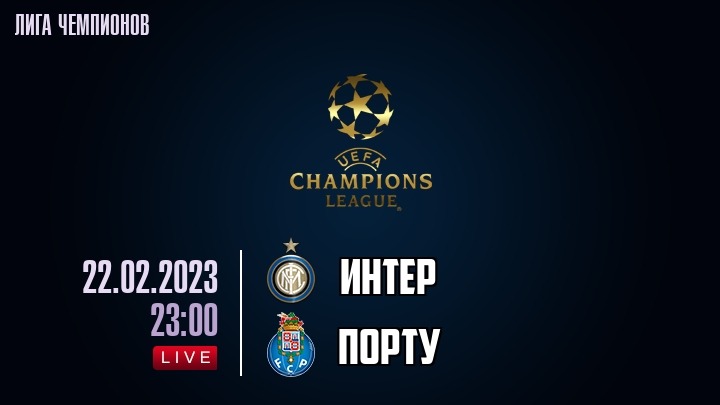 22 февраля 2023 года, состоялась онлайн трансляция футбольного матча между футбольным клубом Интер и футбольным клубом Порту, проходящего в рамках Лиги Чемпионов.