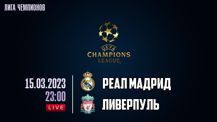 15 марта 2023 года, состоялась онлайн трансляция футбольного матча между футбольным клубом Реал Мадрид и футбольным клубом Ливерпуль, проходящего в рамках Лиги Чемпионов.
