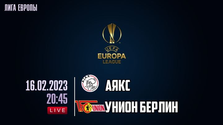 16 февраля 2023 года, состоялась онлайн трансляция футбольного матча между футбольным клубом Аякс и футбольным клубом Унион Берлин, проходящего в рамках Лиги Европы.