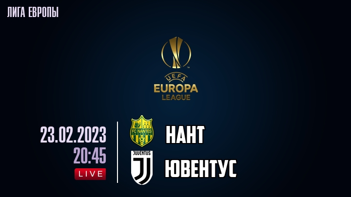 23 февраля 2023 года, состоялась онлайн трансляция футбольного матча между футбольным клубом Нант и футбольным клубом Ювентус, проходящего в рамках Лиги Европы.