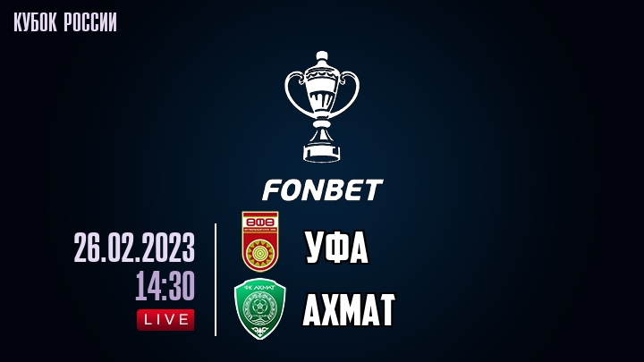 26 февраля 2023 года, состоялась онлайн трансляция футбольного матча между футбольным клубом Уфа и футбольным клубом Ахмат, проходящего в рамках Кубка России.