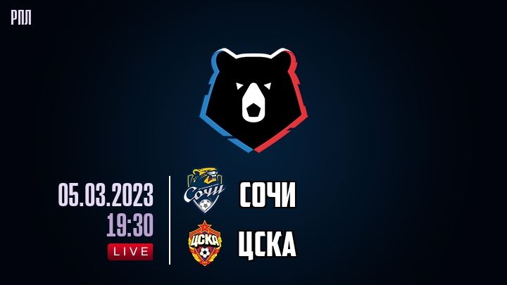 5 марта 2023 года, состоялась онлайн трансляция футбольного матча между футбольным клубом Сочи и футбольным клубом ЦСКА, проходящего в рамках чемпионата РПЛ.