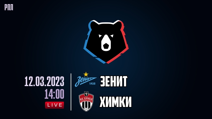 12 марта 2023 года, состоялась онлайн трансляция футбольного матча между футбольным клубом Зенит и футбольным клубом Химки, проходящего в рамках чемпионата РПЛ.