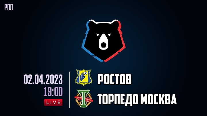 2 апреля 2023 года, состоялась онлайн трансляция футбольного матча между футбольным клубом Ростов и футбольным клубом Торпедо Москва, проходящего в рамках чемпионата РПЛ.