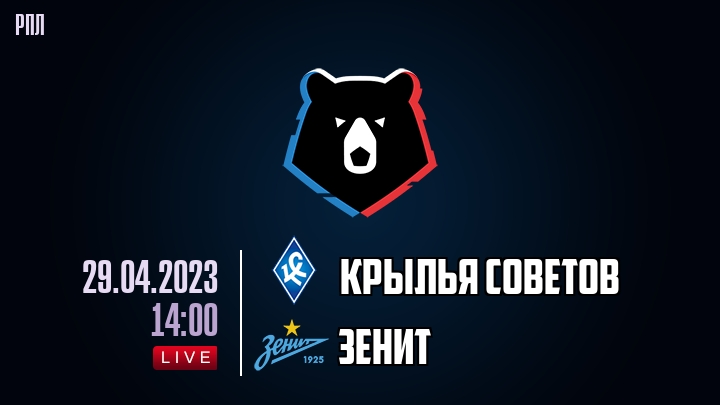 29 апреля 2023 года, состоялась онлайн трансляция футбольного матча между футбольным клубом Крылья Советов и футбольным клубом Зенит, проходящего в рамках чемпионата РПЛ.