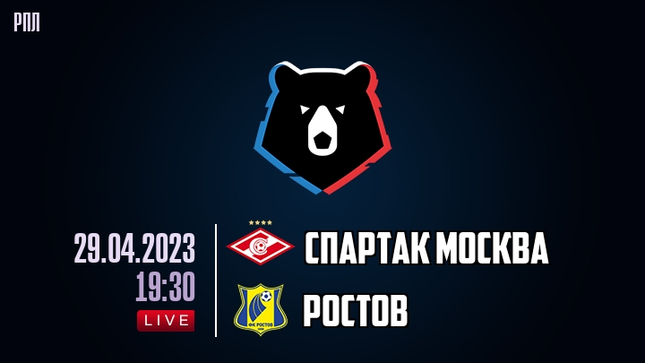 29 апреля 2023 года, состоялась онлайн трансляция футбольного матча между футбольным клубом Спартак Москва и футбольным клубом Ростов, проходящего в рамках чемпионата РПЛ.