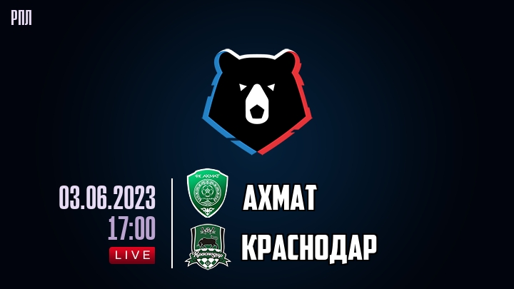 3 июня 2023 года, состоялась онлайн трансляция футбольного матча между футбольным клубом Ахмат и футбольным клубом Краснодар, проходящего в рамках чемпионата РПЛ.