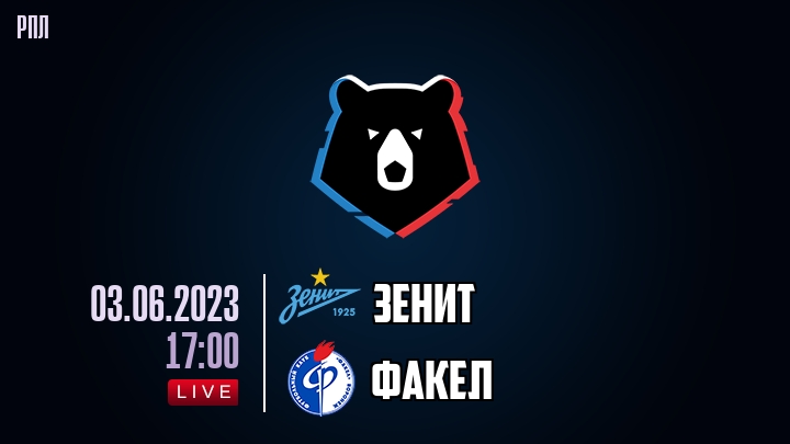 3 июня 2023 года, состоялась онлайн трансляция футбольного матча между футбольным клубом Зенит и футбольным клубом Факел, проходящего в рамках чемпионата РПЛ.